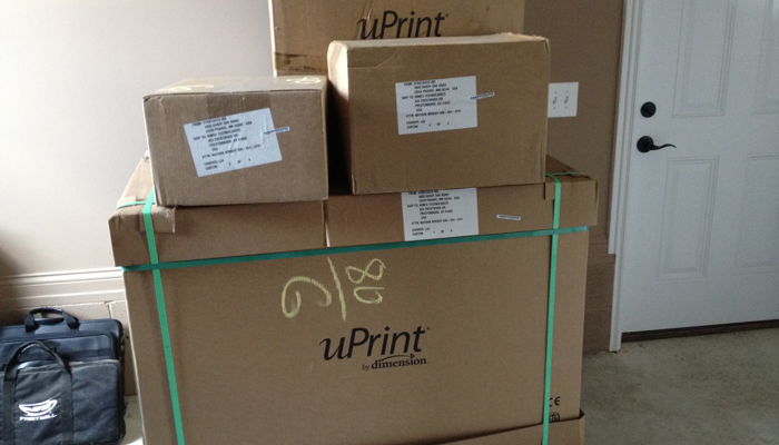 Unfortunately, I can’t just tell the machine to start back where it screwed up, which means that I had to trash all the work on the parts already done. And you’d be surprised how much these rolls of thermoplastic cost. Here’s a picture to the right above of how the printer head looked after I found it. You can sorta make out a white blob behind the shield. This was a bear to separate from the printer (which is obviously a requirement before I can run the machine again). It required much patience. Luckily, I have an ample supply!